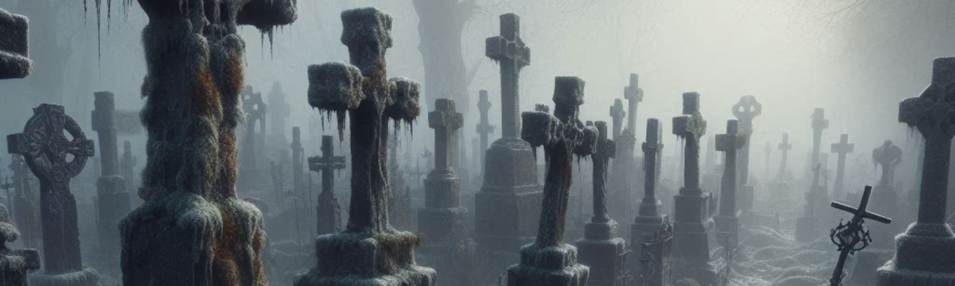 Überall ragen Kreuze aus dem Nebel. Schimmelüberzogen. Schief auf den einsamen Gräbern. Wie verfaulte Finger, die sich aus dem Boden graben wollen. Sie stehen dicht an dicht wie ein Wald, der sich in den Himmel bohrt.